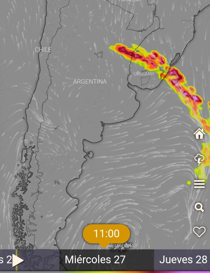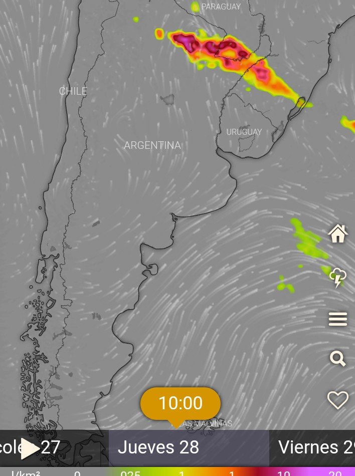 Las Tormentas se extenderán al norte de Argentina después del Miércoles 27 hasta el Sábado 30 hasta el norte de Misiones, y las zonas aledañas.
