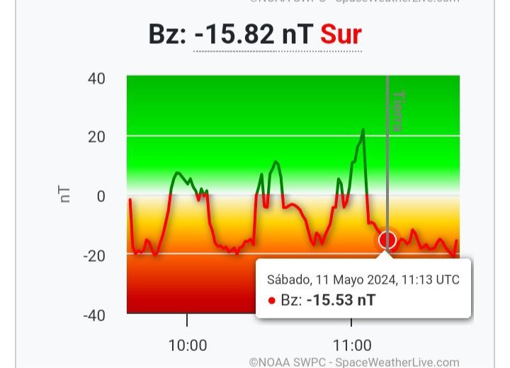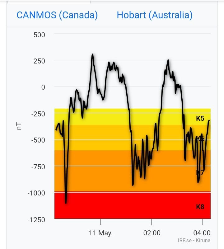 ALERTA: Índice K geomagnético de 9o Umbral alcanzado: 2024 11 de mayo 1128 UTC Período sinóptico: 0900-1200 UTC