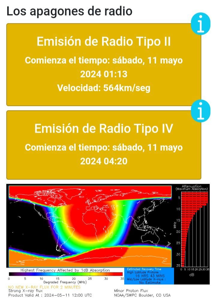 El alcance del apagón de las comunicaciones por radio HF (alta frecuencia) depende de la intensidad actual del flujo de rayos X. Para obtener información en tiempo real sobre el área afectada y la duración esperada, consulte