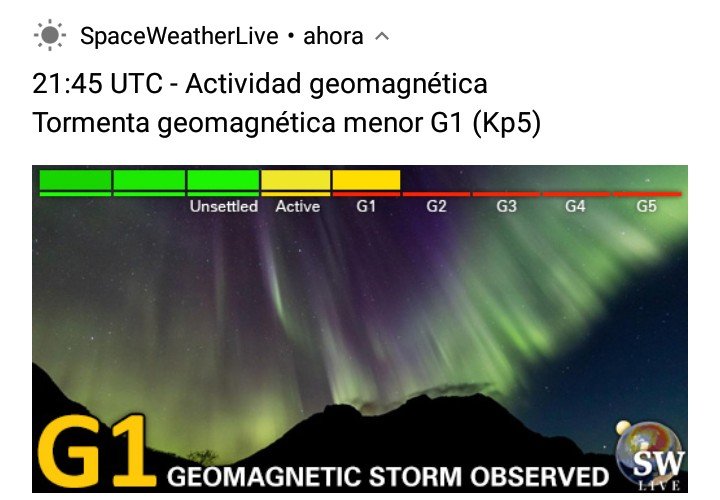Alerta Tormenta Geomágnetica G1 produciendo fluctuaciones en la red eléctrica.