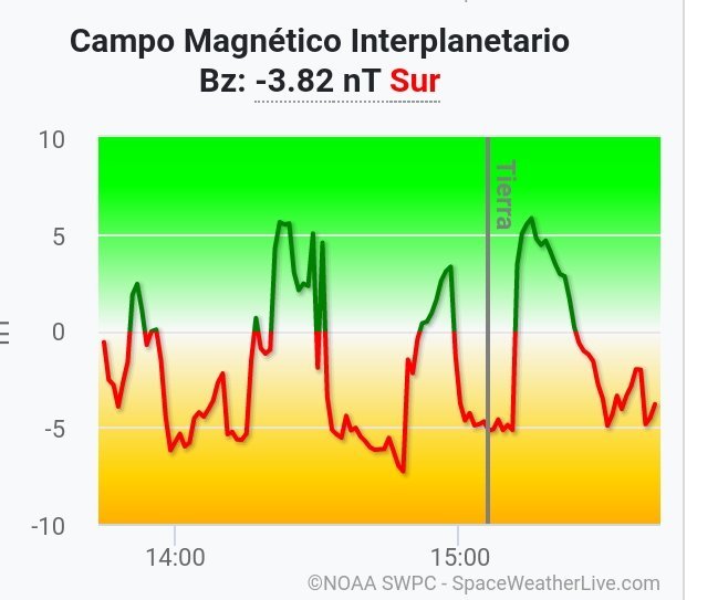 Tormenta Geomágnetica clima espacial, alerta geofísica, G1 índice Kp en 4.