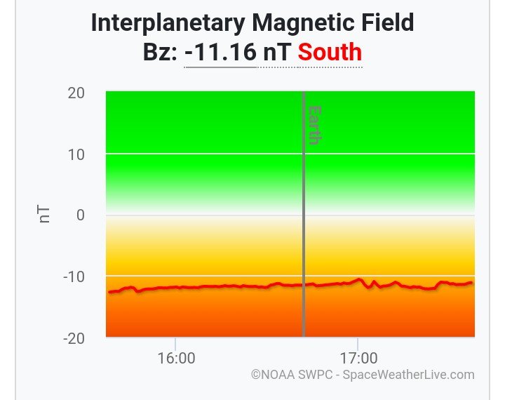 Se está desarrollando una Tormenta Geomágnetica G1 menor según informa la agencia NOAA de los EEUU, dónde la radiación solar está en el índice Kp en 5 que significa que ingresa a la tierra Radiación Solar, producto de una eyección de Masa Corona el 7 de febrero, el viento solar está en 406 Kilómetros por segundo.