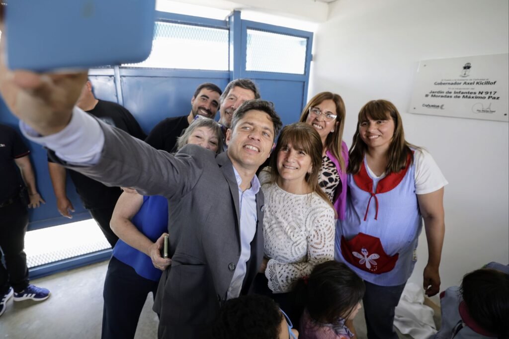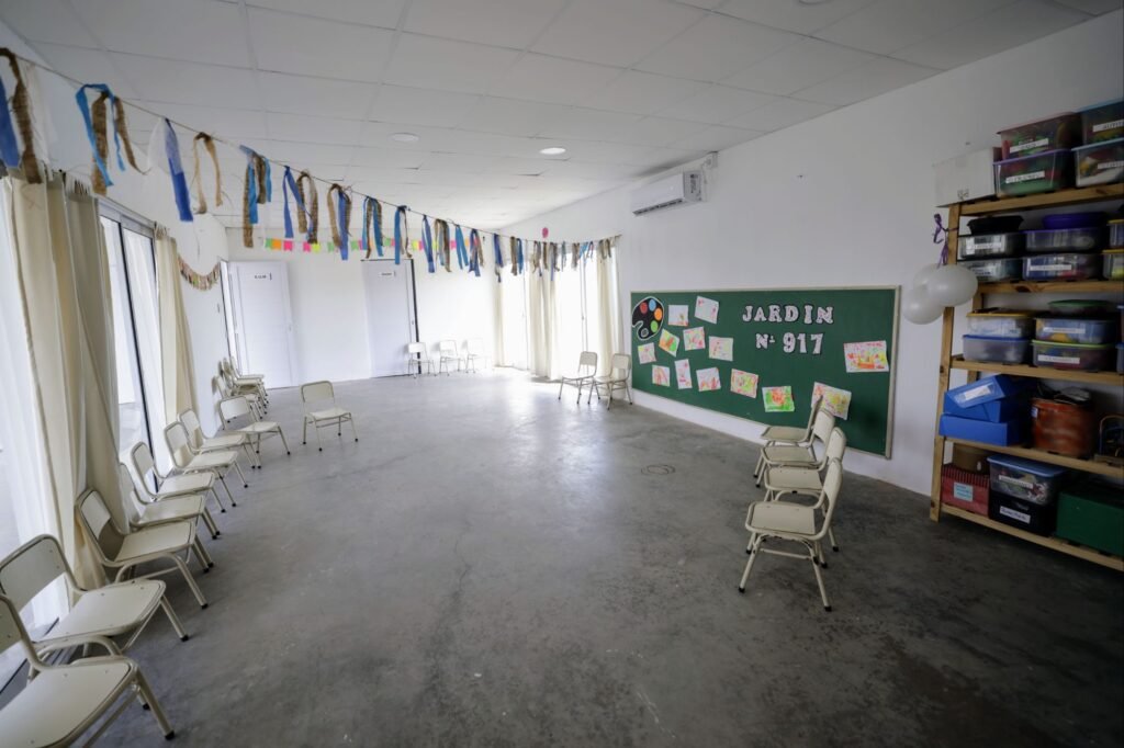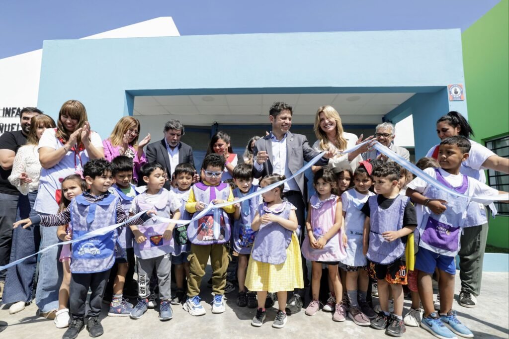 Durante la jornada, Kicillof y el director general de Cultura y Educación, Alberto Sileoni; inauguraron el nuevo edificio del Jardín de Infantes N°917 en la localidad de Máximo Paz. Está ubicado en el barrio Las Moras y permitirá sumar 60 cupos para ampliar su matrícula. Las instalaciones cuentan con tres aulas equipadas, SUM, dependencias administrativas y patio de juegos.