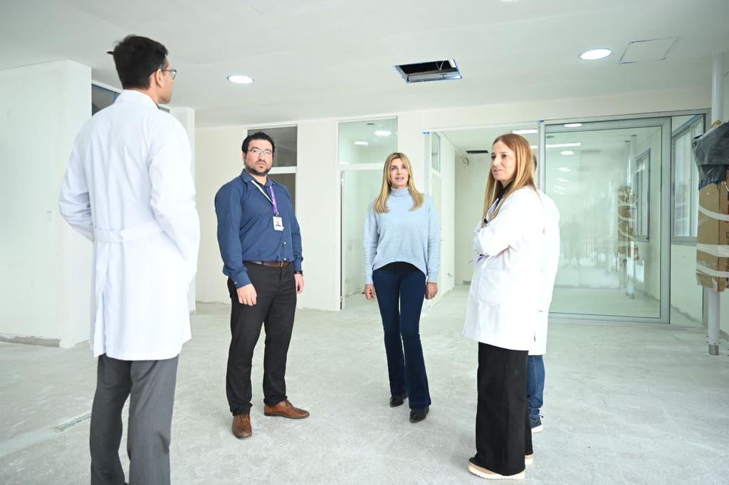 Acompañada por autoridades del HCANK, la intendenta Marisa Fassi recorrió este martes el sector de Hemodinamia que se encuentra en construcción, donde en poco tiempo más comenzará a funcionar el angiógrafo.