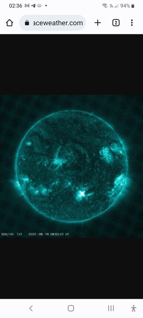 Hoy 17 de agosto se produce la llegada anticipada de la CME “Cannibal” clase M que se describe a continuación, o podría ser una CME previamente no reconocida que se infiltra antes de la tormenta que se espera para el 18 de agosto.