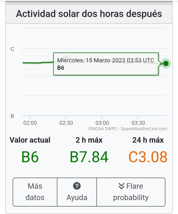 Este PCA podría persistir durante un día o más. Puede monitorear su progreso aquí . Alertas de llamaradas solares.