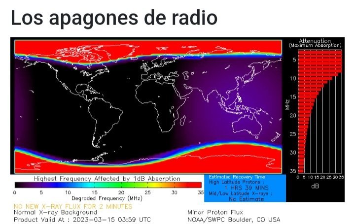 El campo magnético de la Tierra está canalizando las partículas hacia los polos donde se está produciendo un tipo de apagón de radio, un evento de absorción del casquete polar ( PCA ):