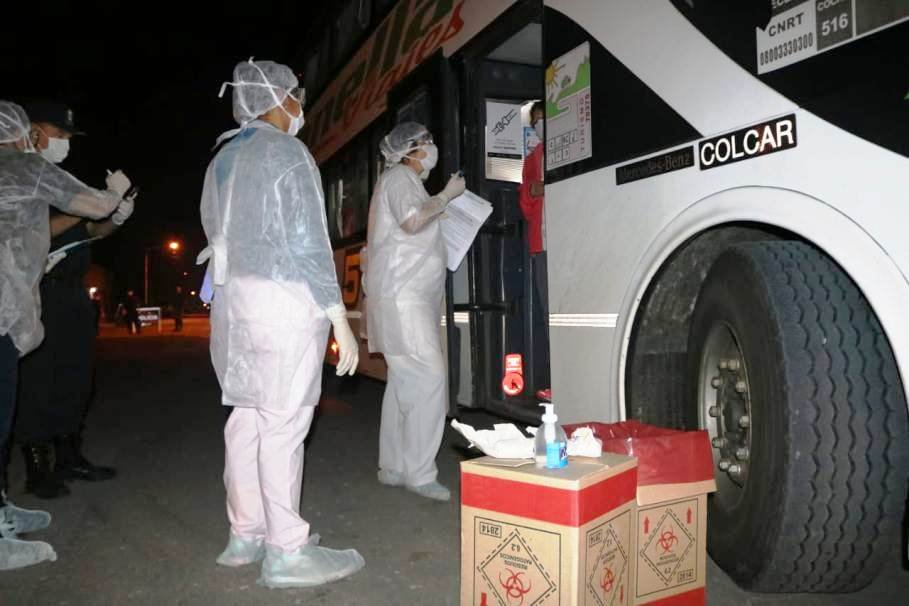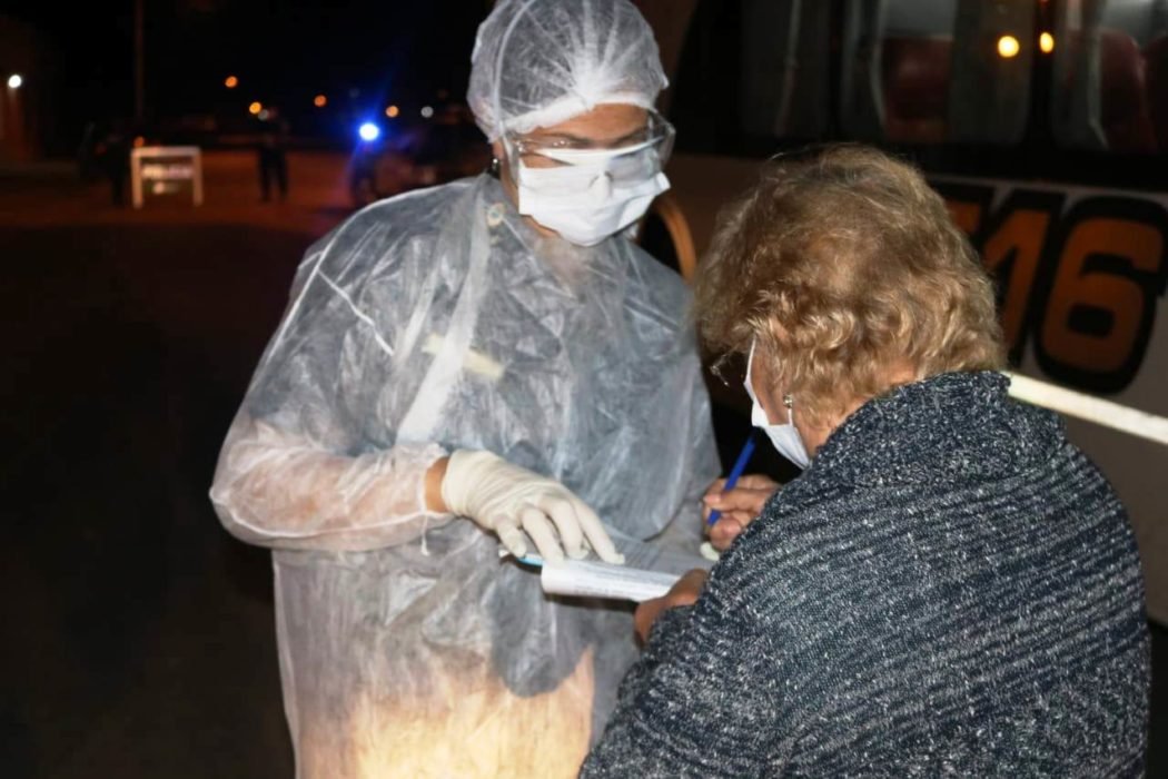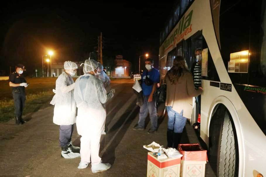 Un equipo médico coordinado por la Lic. María Delia Pené, epidemióloga del Hospital Ángel Marzetti, y el secretario de Producción Manuel Negrín, realizó una evaluación clínica y epidemiológica a cada uno de los pasajeros, para detectar la existencia de fiebre o cualquier otra patología.