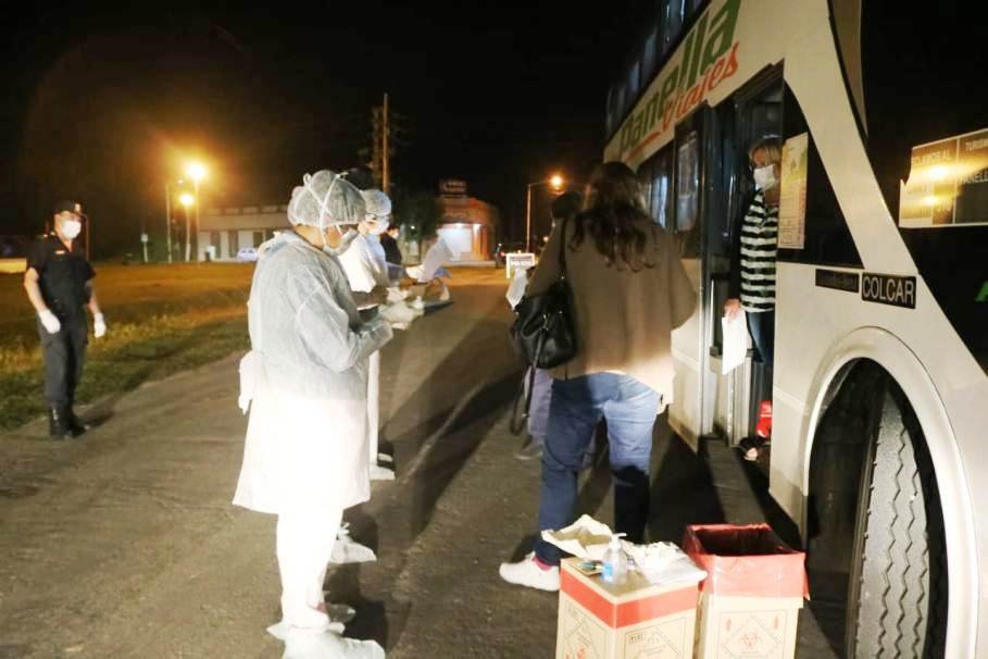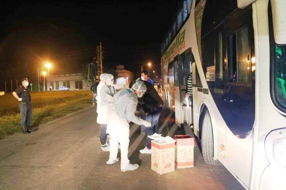 Autoridades sanitarias, con apoyo de la fuerza policial, llevaron a cabo esta noche un operativo especial para recibir a un contingente de turistas que arribaron en un micro provenientes de Brasil. Debido a que se trata de un país con circulación de COVID-19, el Municipio montó un operativo para garantizar que se cumplan los protocolos de aislamiento obligatorios.