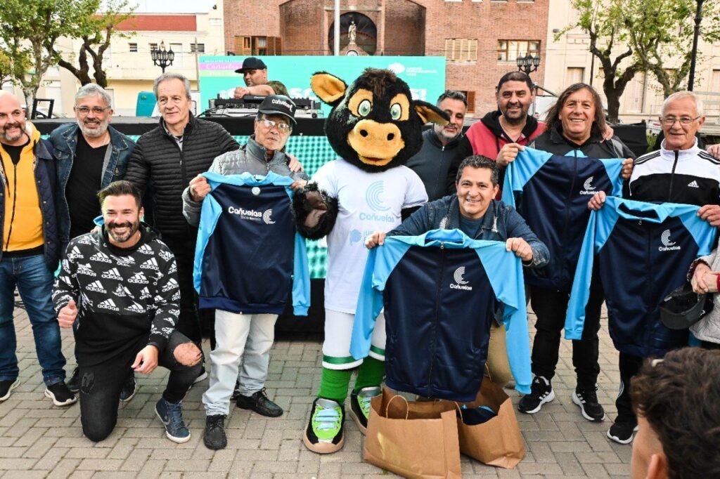 Los integrantes de la Delegación Cañuelas recibieron gorras, mochilas y camperas, acompañados por los funcionarios a cargo de las áreas de Deportes, Adrián Monod; Cultura, Esteban Sarlenga; y Adultos Mayores, Daniel Corrales.