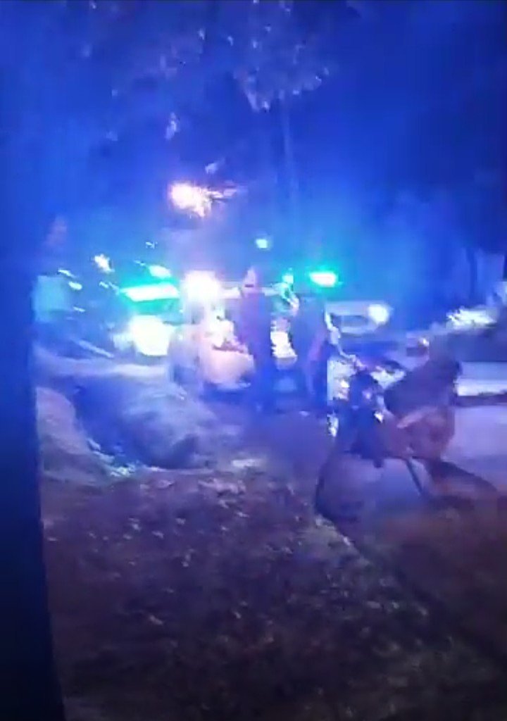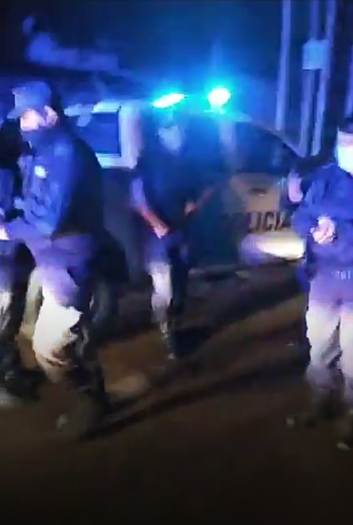 En una situación en donde más de 8 móviles Policiales con los móviles de el área de Tránsito, en la calle Brasil entre la calle San Juan y Entre Ríos en el barrio de los Aromos en Cañuelas este jueves 24 de junio por la noche.