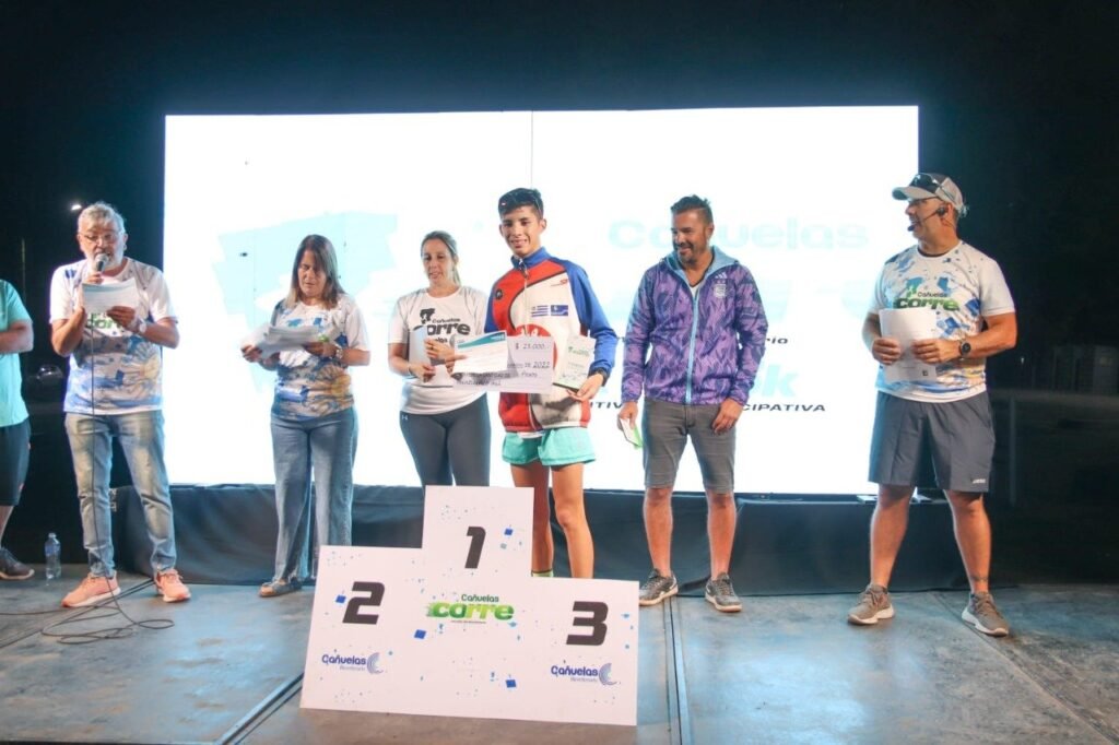 No podía ser de otra manera, Cañuelas Corre premió a los dos cañuelenses más veloces en 8k: Bautista Long con 28m, 32seg entre los masculinos y Ángeles Frati entre las mujeres con un tiempo de 37 minutos, 03 segundos.