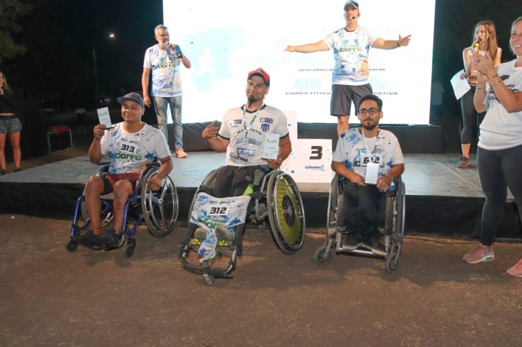 El atleta disminuido visual, Leonardo Castro fue el mejor entre sus pares con 41m, 12seg. En tanto que en silla, Ivan Pintos fue el mejor con 36m, 03 segundos.