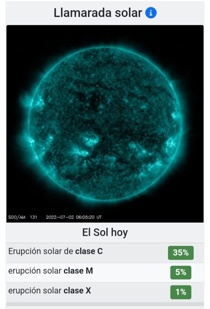 Se espera que el campo geomagnético esté en niveles tranquilos los días uno, dos y tres (02 de julio, 03 de julio, 04 de julio). Dentro de la tormenta geomagnética que afectará el clima, modificando las Tormentas Climáticas y el clima afectando lo pronosticado por los climatologos.