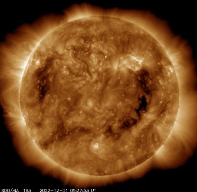 El 30 de noviembre una eyección de masa coronal salió del sol en dirección a la Tierra, en este 1’de diciembre las condiciones están en G1 pudiendo llegar a G2, las condiciones geomáticas en la tierra hace que se puedan generar Terremotos superior a los 7 grados en la escala de Richter, en lugares con precursores sísmicos, también varios volcanes entraron en erección el 30 de noviembre del 2022